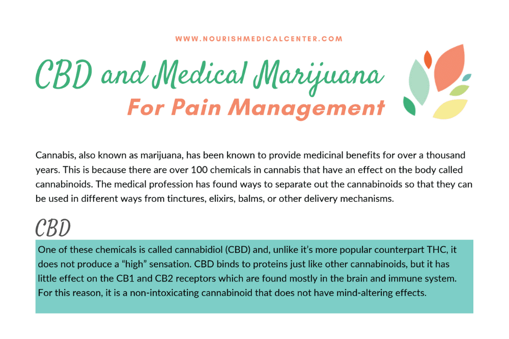 At Nourish Medical Center, we help patients navigate cannabis-based pain management as part of comprehensive treatment plans. This handout provides evidence-based information to help you make informed decisions about using CBD or medical marijuana.