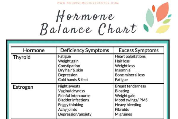 Comprehensive hormone balance reference chart from Nourish Medical Center. Understand the interconnections between thyroid, adrenal, and sex hormones.