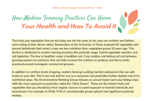 Learn how modern farming practices impact health with guidance from Nourish Medical Center. Discover ways to reduce exposure to pesticides and food additives.