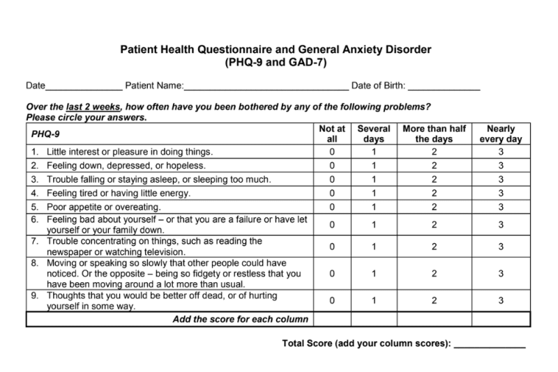 To download Patient Health Questionnaire and General Anxiety Disorder (PHQ-9 and GAD-7) today just enter your email address! *Your inbox is safe here. We never share or sell your email.