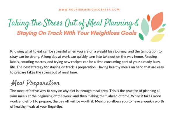 Simplify meal planning and stay on track with weight loss goals using tips from Nourish Medical Center. Practical strategies for stress-free healthy eating.
