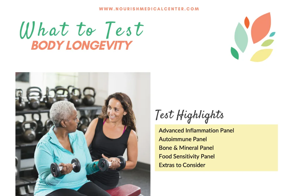 Essential lab tests for longevity and optimal aging from Nourish Medical Center. Learn which biomarkers to track for healthspan, vitality, and disease prevention.